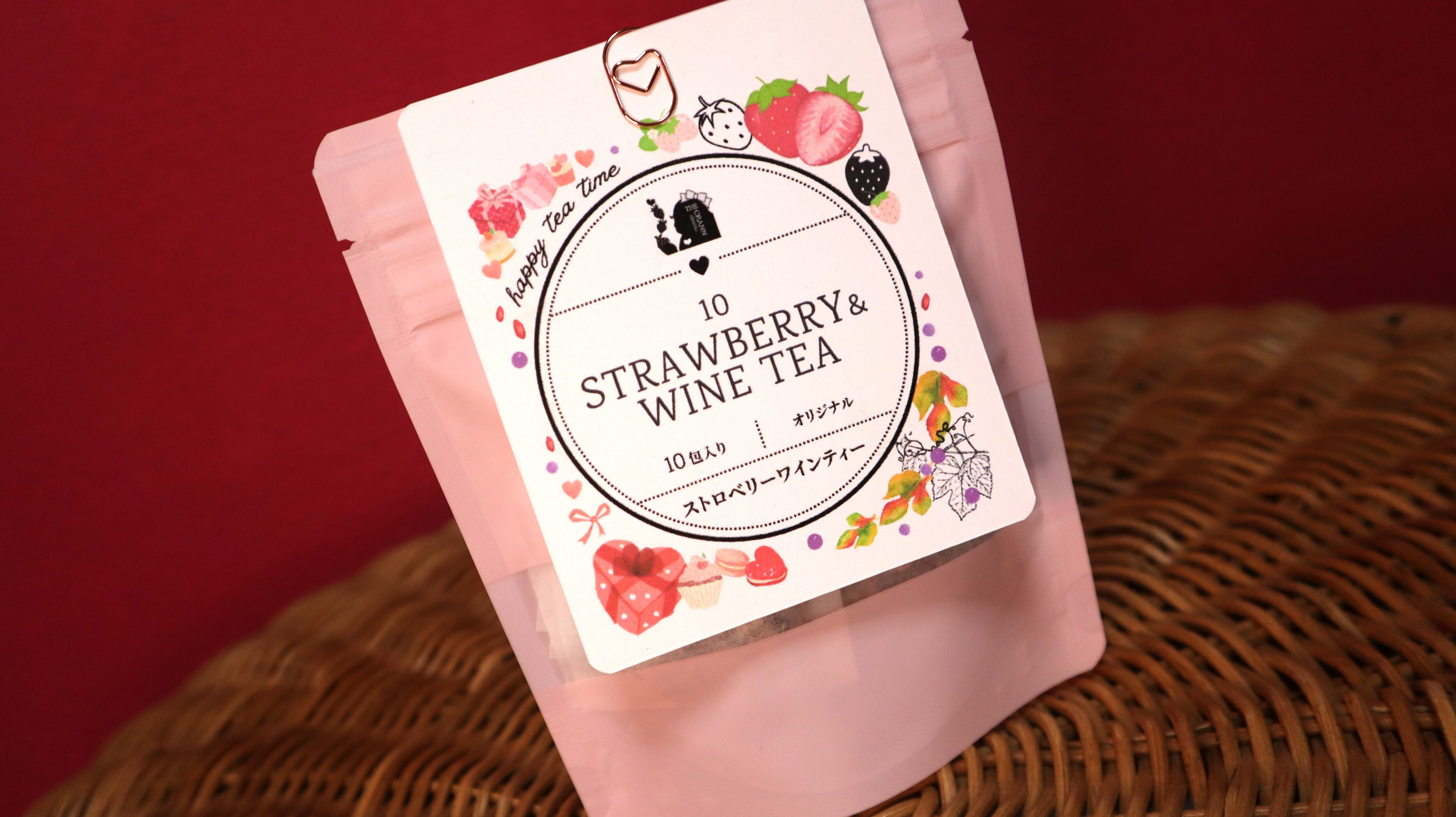 ストロベリーティー、レッドワインリーフティー、アップルフルーツ、ローズレッド、ローズヒップ、オレンジピール、クコの実(ゴジベリー)がブレンドされたフレーバーハーブティーです。